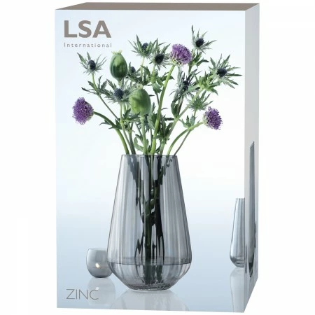 This handmade vessel by LSA International is ideal for showcasing flowers and foliage. Features a pleated texture with a hand-painted grey lustre finish, reminiscent of zinc. This stylish vase stands at 28cm tall and 18cm wide. Comes with a branded gift box. Care: Handwash in warm soapy water and dry with a soft cloth.