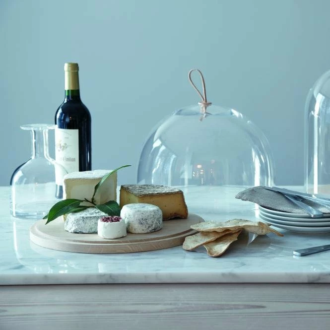 mundgeblasenes Glasmit Lederschlaufestilvoller Kontrast aus Holz & GlasGlasglocke aus mundgeblasenem Glas mit Ledergriff und Platte aus Eschenholz. Die Glasglocke ist nicht nur höchst dekorativ, sondern schützt auch Torten, Käse oder Obst und ist mit dem Griff aus Leder besonders praktisch. In verschiedenen Größen erhältlich. Produktpflege: Das Holz kann ganz dünn mitSpeiseöl eingerieben werden. Käse oder Kuchen können direkt auf die Holzplatte plaziertwerden, das Holz kann hier aber Fett annehmen. Gerüche nimmt das Holznicht an, wenn es sofort gespült wird.