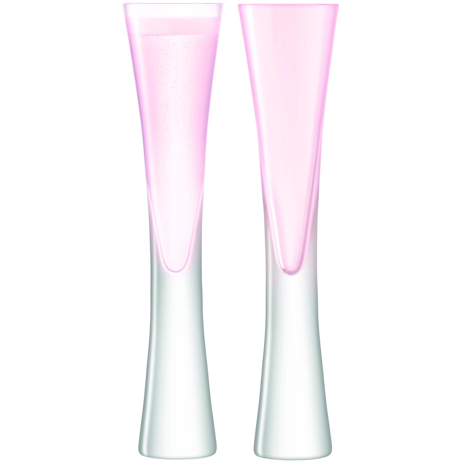 A distinctive and modern handmade and mouthblown champagne flute, with a tapered waist that flares out to a pleasingly weighty base. Updated with a hint of blush pink inspired by rose champagne.